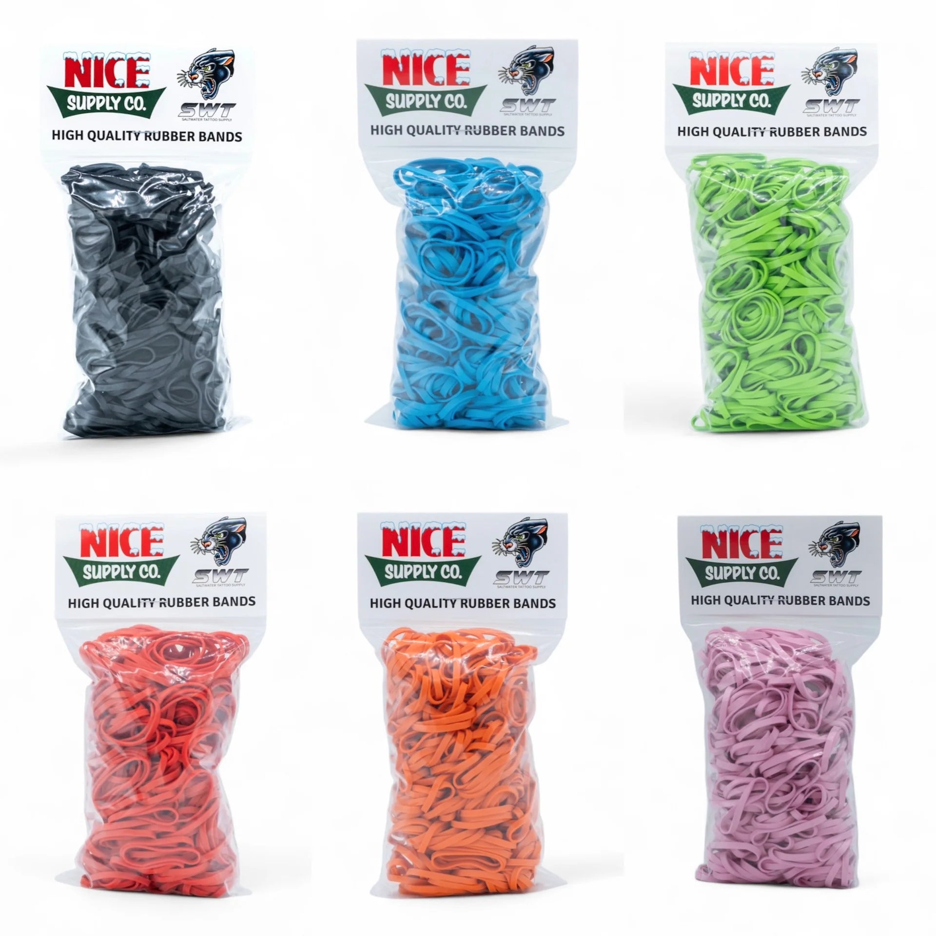 Nice Supply Co. & Saltwater Tattoo Supply teamed up to get you the highest quality thick rubber bands made in the USA. Sold in QP’s and ready to roll!