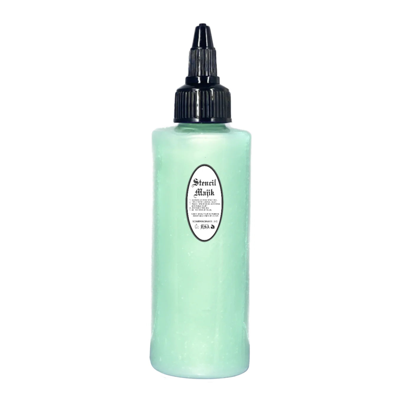 Only sold in 4oz. bottles. Works great to adhere the perfect stencil. To erase a stencil just re-apply and work it off with a paper towel. Use a damp paper towel with witch hazel to set it in.
